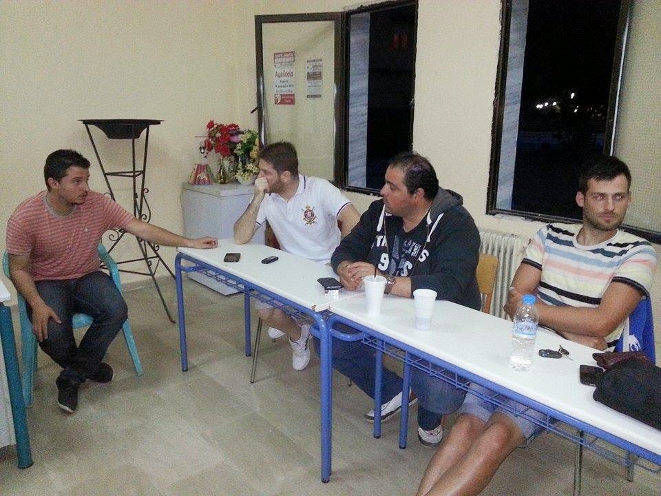 Μέσα σε κλίμα ενθουσιασμού, αισιοδοξίας και ανυπομονησίας για την έναρξη της νέας ποδοσφαιρικής χρονιάς, πραγματοποιήθηκε στα γραφεία του Συλλόγου Αιμοδοσίας συνάντηση Διοίκησης, προπονητή και ποδοσφαιριστών, το βράδυ της Παρασκευής 27 Ιουνίου 2014.Παρόντες στη συνάντηση 18 ποδοσφαιριστές, αφού έλλειπαν ορισμένοι λόγω διακοπών και κάποιοι φοιτητές λόγω εξεταστικής. Στην αρχή σύντομη ομιλία από τον πρόεδρο και τον προπονητή, ανάλυση της φιλοσοφίας και των στόχων της ομάδας και τοποθετήσεις από τους παλαιότερους κυρίως ποδοσφαιριστές. Στη συνέχεια σχεδόν όλοι οι παίκτες δήλωσαν με ενθουσιασμό ”παρόντες” στη νέα προσπάθεια και αφού αποφασίστηκε συνάντηση την ερχόμενη Τετάρτη με τους ποδοσφαιριστές που απουσίαζαν, αποχώρησαν όλοι ανανεώνοντας το ΡΑΝΤΕΒΟΥ τους για το 3ο δεκαήμερο του Ιουλίου, στην έναρξη της προετοιμασίας, όταν και θα έχει ολοκληρωθεί το ρόστερ της ομάδας (αποχώρηση και απόκτηση-επιστροφή παικτών, αλλά και προώθηση παιδιών από την Ακαδημία).