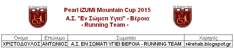 Την Κυριακή 18 Ιανουαρίου θα διεξαχθεί στο Κρυονέρι Αττικής, ο πρώτος από τους τρεις αγώνες ορεινού τρεξιματος της σειράς “Pearl iZUMi Mountain Cup 2015”. Ο αγώνας περιλαμβάνει 2 διαδρομές, των 13χλμ και των 8χλμ. Στον αγώνα τον 8χλμ θα λάβει μέρος ο αθλητής μας ΧΡΙΣΤΟΔΟΥΛΟΣ ΑΝΤΩΝΙΟΣ.
