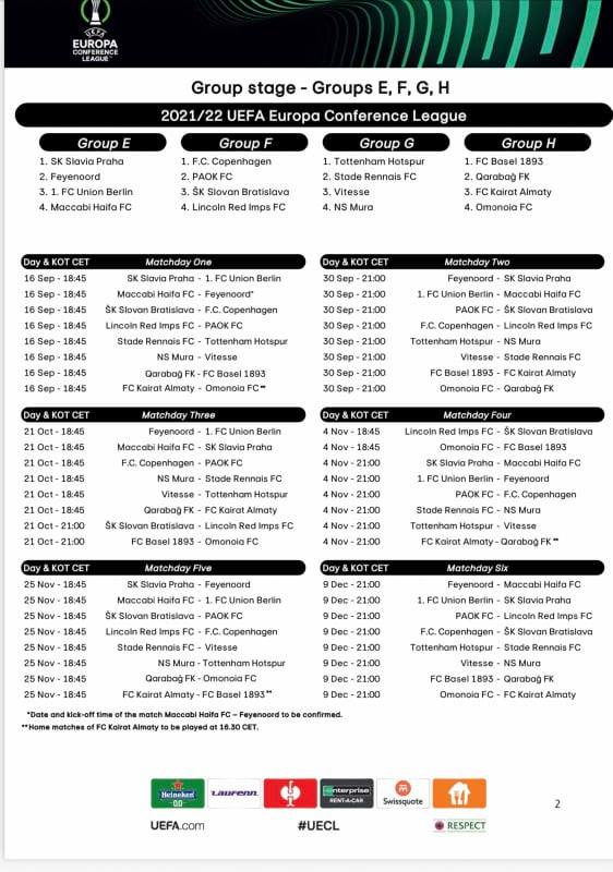 Ανακοινώθηκε το πρόγραμμα του ΠΑΟΚ στον 6ο όμιλο του Europa Conference League.