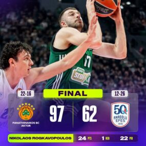 Παναθηναϊκός – Αναντολού Εφές 97-62: «Εκατοντάρα» στο ευρωπαϊκό νούμερο 1000 και τώρα Μονακό στα play-in (vid) Σήμερα στις 22:45