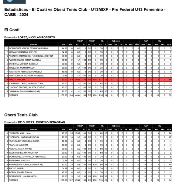 Η Παολίνα μπορούσε να παίξει μόνο δύο δεκάλεπτα γιατί στην Αργεντινή είναι το μέγιστο που επιτρέπουν στην κατηγορία των παίδων ώστε τα λεπτά να μοιράζονται σε όλους τους παίκτες. Στο πρώτο δεκάλεπτο που έπαιξε (το δεύτερο) πέτυχε τους 38 από τους 41 πόντους της Ελ Κοατί, ενώ στο δεύτερο που έπαιξε (το τέταρτο) πέτυχε τους 55 από τους 57 πόντους της ομάδας της!