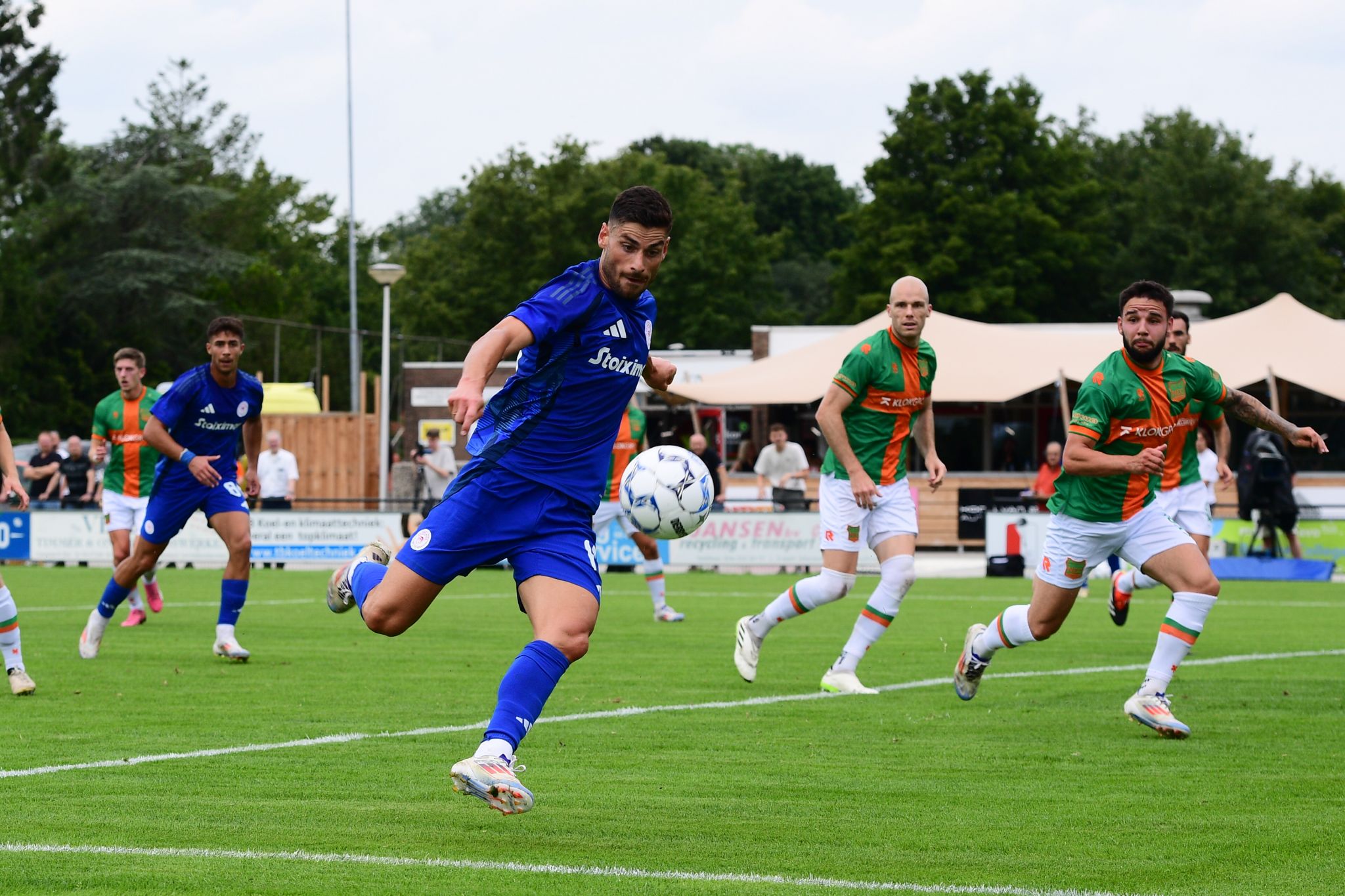 Από την αρχή της φιλικής αναμέτρησης ο Ολυμπιακός έδειχνε να ελέγχει το ματς και στο 23′ απείλησε με την κεφαλιά του Κωστούλα, μετά από σέντρα του Μαρτίνς, αλλά η μπάλα πέρασε ελάχιστα άουτ. Στο 29′ ο Αποστολόπουλος έκανε το σουτ με το δεξί, η μπάλα κόντραρε σε αντίπαλο αμυντικό και σταμάτησε στο οριζόντιο δοκάρι.