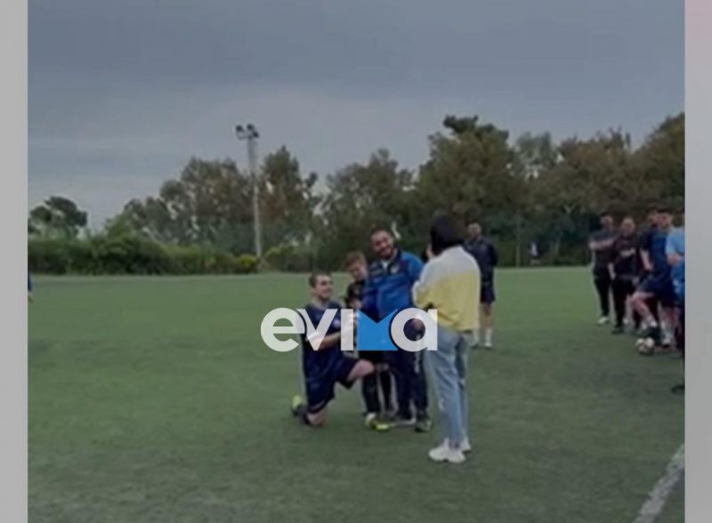 «Γκολ… στην καρδιά» της αγαπημένης του έβαλε ποδοσφαιριστής Εύβοια κάνοντας της πρόταση λίγο πριν την απονομή του κυπέλου στην ομάδα της Κύμης.