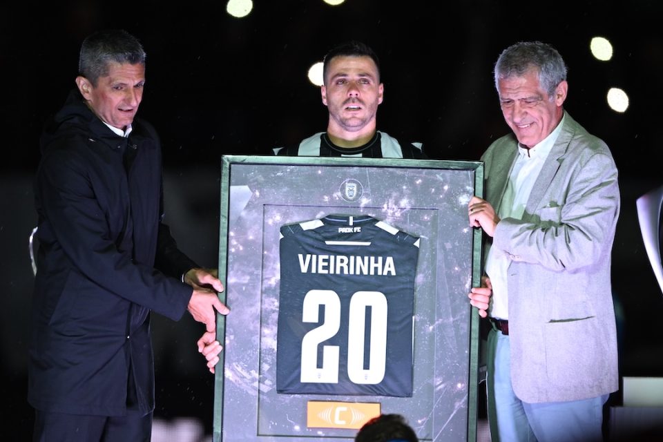 Μια συγκινητική βραδιά, αφιερωμένη στον αρχηγό-σύμβολο του ΠΑΟΚ, τον Αντρέ Βιεϊρίνια, πραγματοποιήθηκε στην κατάμεστη Τούμπα, παρουσία του Φερνάντο Σάντος, που υπήρξε καθοριστικός στην πορεία του Πορτογάλου στον Δικέφαλο. Τα φώτα χαμήλωσαν, τα κινητά δημιούργησαν μια μαγική ατμόσφαιρα και ο αρχηγός πέρασε ανάμεσα από συμπαίκτες και προπονητές που φορούσαν τη φανέλα με το Νο20 και το μήνυμα #TheLeader, γνωρίζοντας την αποθέωση.