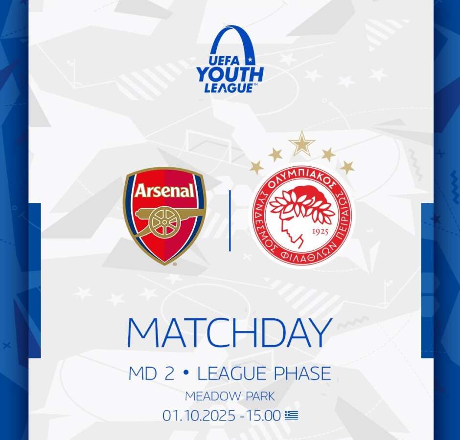 Ξεκίνησε πριν λίγη ώρα (15.00) η αναμέτρηση της 2ης αγωνιστικής του Youth League, με την U19 του Ολυμπιακού να φιλοξενείται στο Λονδίνο από την αντίστοιχη της Άρσεναλ.