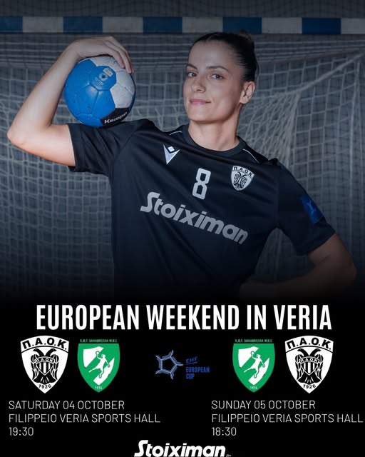 Η γυναικεία ομάδα χάντμπολ του ΠΑΟΚ δίνει το πρώτο της ευρωπαϊκό ραντεβού για τη σεζόν στη Βέροια και συγκεκριμένα στο Φιλίππειο Κλειστό Γυμναστήριο. Το διήμερο 4 και 5 Οκτωβρίου, οι «ασπρόμαυρες» θα αντιμετωπίσουν τη Σόκολ Πίσεκ από την Τσεχία, σε διπλές αναμετρήσεις για το EHF European Cup. Ο «Δικέφαλος» θέλει να αξιοποιήσει τη δυναμική έδρα της Βέροιας και τη στήριξη του κόσμου, ώστε να πάρει το προβάδισμα πρόκρισης στον επόμενο γύρο της διοργάνωσης.