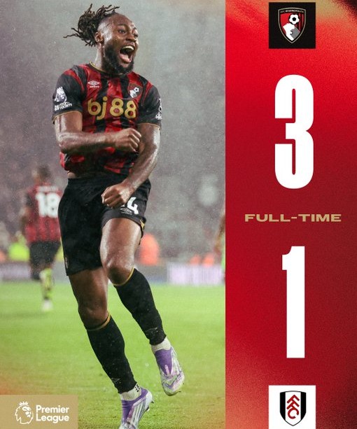 Η Μπόρνμουθ έδειξε ξανά χαρακτήρα και ανέτρεψε το σκορ απέναντι στη Φούλαμ, παίρνοντας σπουδαία νίκη με 3-1 στο «Βιτάλιτι», στο πρώτο ματς της 7ης αγωνιστικής της Premier League. Οι φιλοξενούμενοι προηγήθηκαν στο 70’ με τον Ράιαν Σεσενιόν, όμως οι «κερασιές» απάντησαν άμεσα. Ο Αντουάν Σεμένιο ισοφάρισε στο 78’ για την ομάδα του Άντονι Ιραόλα, ο Τζάστιν Κλάιφερτ με εξαιρετικό σουτ έξω από την περιοχή έδωσε το προβάδισμα στο 84’ και στις καθυστερήσεις ο Σεμένιο «κλείδωσε» τη νίκη ολοκληρώνοντας την αντεπίθεση.