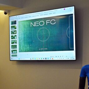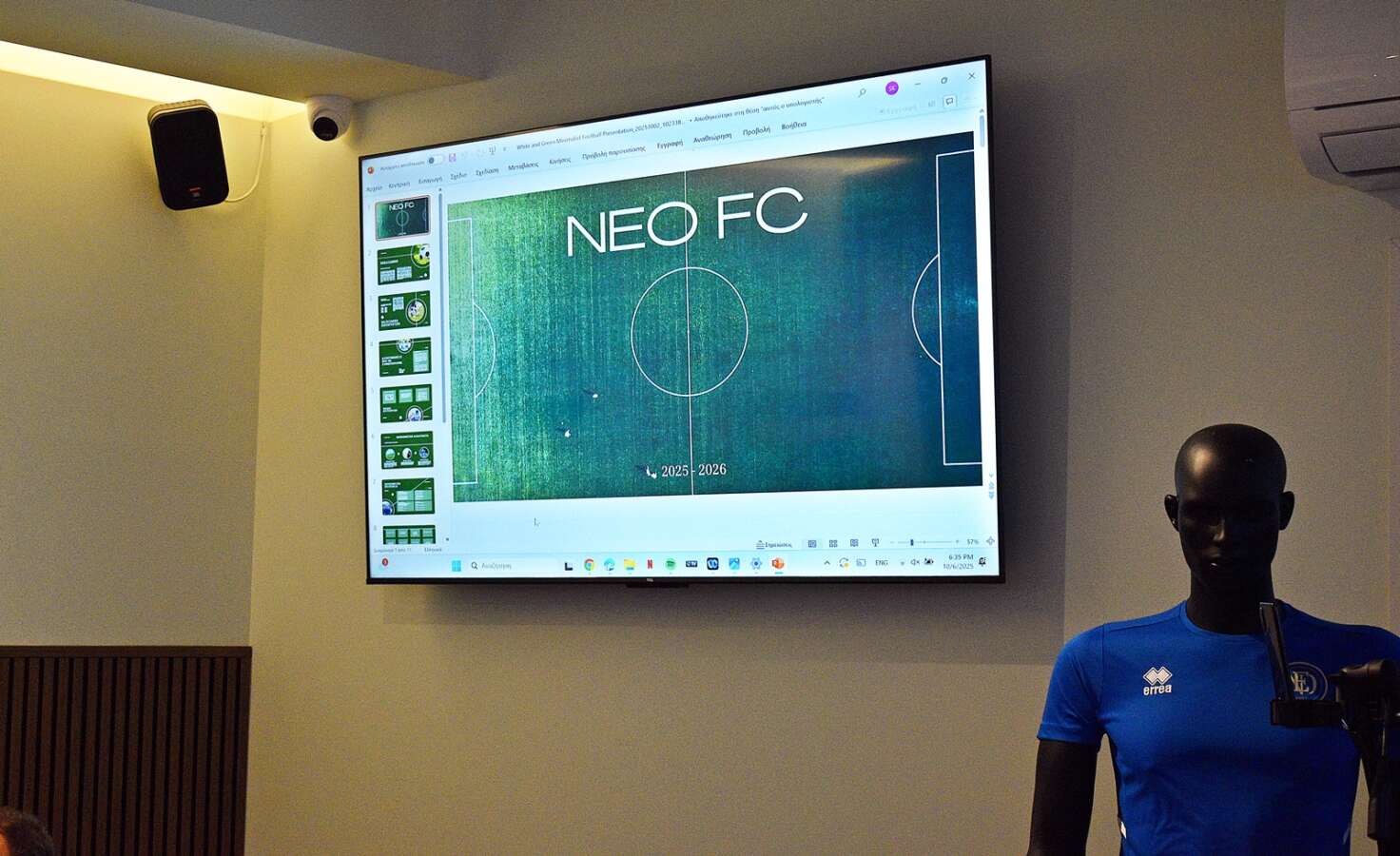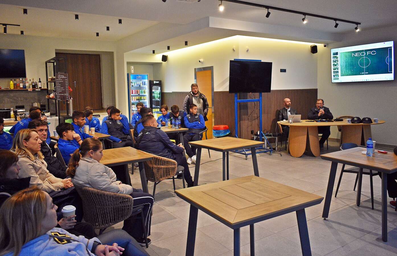 Μια εξαιρετικά οργανωμένη εκδήλωση πραγματοποίησε το απόγευμα της Κυριακής ο Εθνικός Νέου Κεραμιδίου, στο πλαίσιο της παρουσίασης του νέου οργανογράμματος της Ακαδημίας αλλά και του νέου, μοντέρνου λογοτύπου του συλλόγου. Παρά τη βροχή, η συμμετοχή του κόσμου ήταν εντυπωσιακή, με την παρουσία δεκάδων γονέων που στηρίζουν καθημερινά την προσπάθεια του σωματείου.