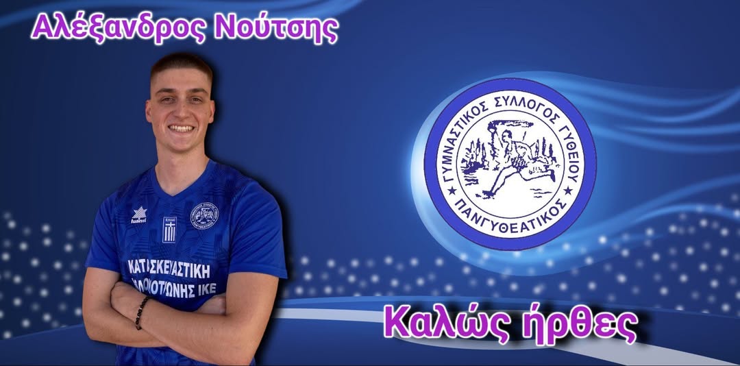Ο Πανγυθεατικός ανακοίνωσε την έναρξη συνεργασίας με τον Αλέξανδρο Νούτση, ο οποίος θα ενισχύσει την ομάδα τόσο αγωνιστικά όσο και στο τεχνικό επιτελείο. Ο Νούτσης αγωνίζεται ως κεντρικός αμυντικός και αμυντικό χαφ, ενώ παράλληλα θα αναλάβει και τα καθήκοντα του γυμναστή της ομάδας.