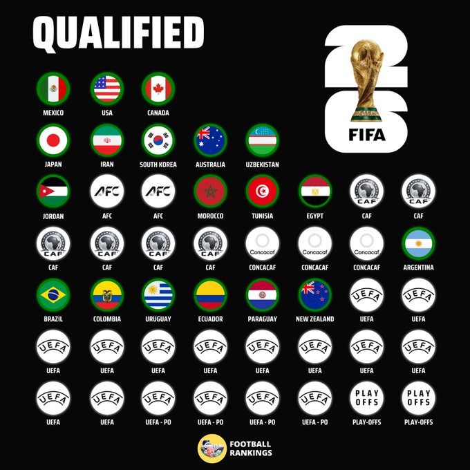 Το παζλ των ομάδων που θα βρεθούν στα γήπεδα της Βόρειας Αμερικής αρχίζει να συμπληρώνεται, καθώς ήδη το ένα τρίτο των εισιτηρίων έχει βρει κάτοχο. Πέρα από τις τρεις διοργανώτριες χώρες, ακόμη 16 εθνικές ομάδες έχουν «σφραγίσει» την πρόκριση, με την Αίγυπτο να είναι η πιο πρόσφατη που προστέθηκε στη λίστα.