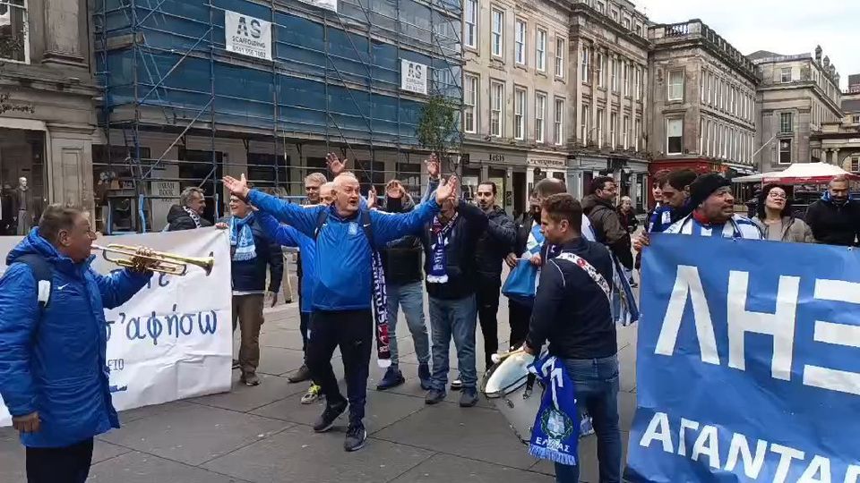 Η Γλασκώβη έχει «ντυθεί» στα γαλανόλευκα, καθώς η Εθνική μας ομάδα ποδοσφαίρου ετοιμάζεται να δώσει απόψε έναν ιδιαίτερα σημαντικό αγώνα απέναντι στη Σκωτία, στο πλαίσιο των προκριματικών του Παγκοσμίου Κυπέλλου.