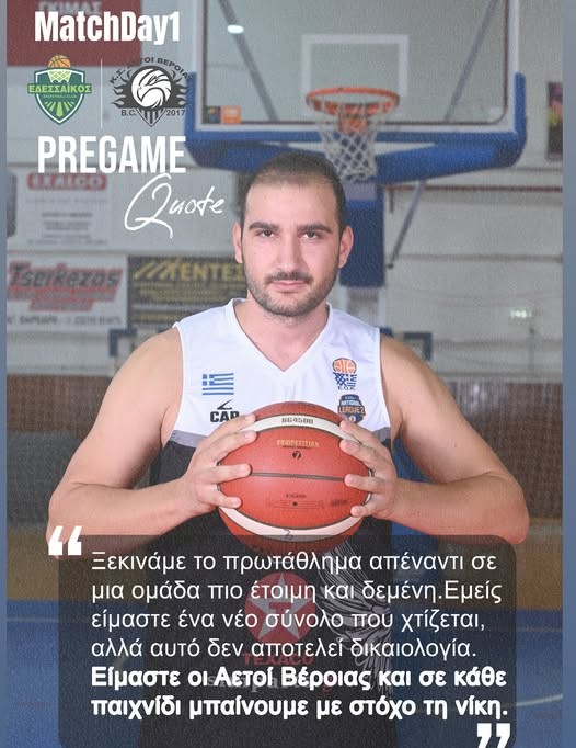 Οι Αετοί Βέροιας ρίχνονται το Σάββατο (11/10, 20:30) στη «μάχη» του πρωταθλήματος της ΕΚΑΣΚΕΜ, αντιμετωπίζοντας εκτός έδρας τον Εδεσσαϊκό στο Κλειστό της Έδεσσας. Η ομάδα του Αντώνη Δαχρετζή, με νέο πρόσωπο στον πάγκο αλλά γνώριμο κορμό παικτών, ξεκινά ένα απαιτητικό ταξίδι με σαφή στόχο την επιστροφή στη Γ’ Εθνική.