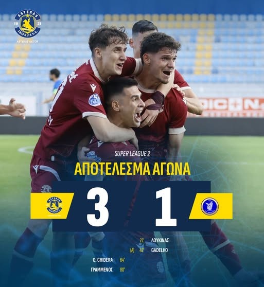 Ο Αστέρας Β υπέταξε τη μέχρι πρότινος αήττητη Νίκη Βόλου με 3-1 στην Τρίπολη, πετυχαίνοντας τη μεγαλύτερη νίκη του μέχρι τώρα στη Super League 2. Οι Αρκάδες, παρά το εις βάρος τους σκορ, γύρισαν το παιχνίδι με ψυχή και αποφασιστικότητα, σπάζοντας το απόλυτο 4/4 των φιλοξενούμενων και στέλνοντας μήνυμα ετοιμότητας.
