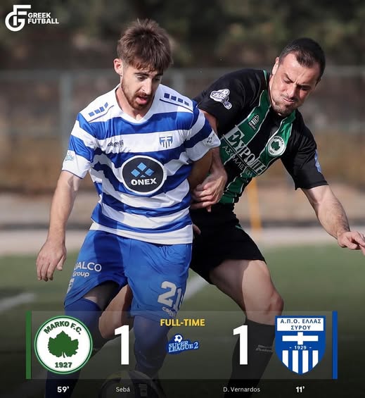 Μοιράστηκαν βαθμούς και εντυπώσεις η Μαρκό και η Ελλάς Σύρου στο Μαρκόπουλο, μένοντας στο 1-1 σε ένα παιχνίδι με ρυθμό, ένταση και χαμένες ευκαιρίες. Οι γηπεδούχοι μπήκαν πιο δυνατά και απείλησαν δις στα πρώτα λεπτά με τους Κυριακίδη και Ντέτλερ, όμως η Ελλάς Σύρου ήταν αυτή που βρήκε πρώτη το γκολ. Στο 11’, μετά από ασταθή απόκρουση του Αυγερινού, ο Βερνάρδος εκμεταλλεύτηκε τη σύγχυση και με πλασέ έγραψε το 0-1.