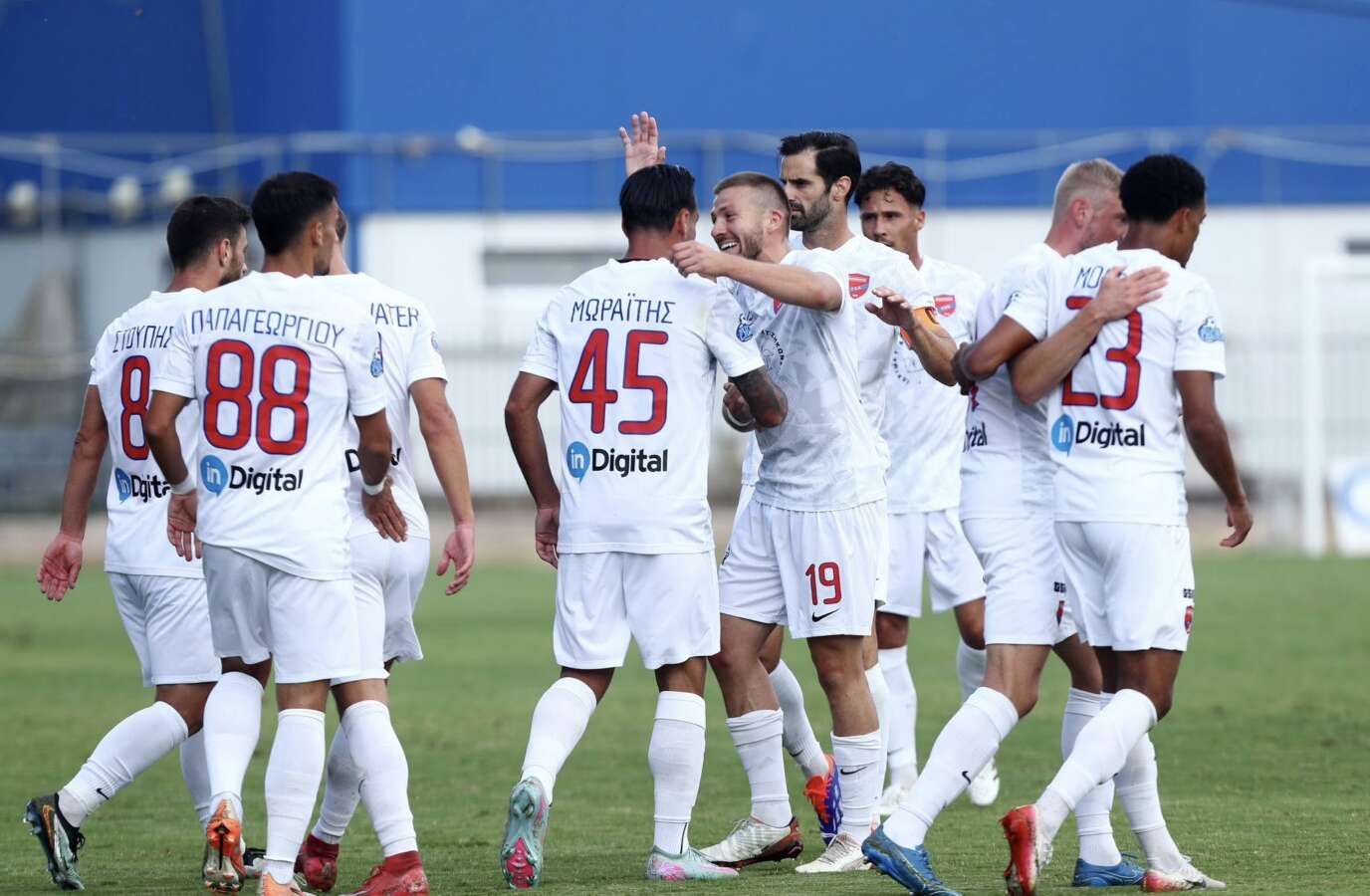 Η ομάδα του Παύλου Δερμιτζάκη μπήκε δυνατά από το ξεκίνημα και έδειξε από νωρίς τις προθέσεις της. Στο 13’, μετά από ιδανική σέντρα του Φαν ντερ Βάτερ, ο Μωραΐτης με κεφαλιά νίκησε τον Τσιλιγγίρη για το 1-0. Πέντε λεπτά αργότερα, το ίδιο δίδυμο συνεργάστηκε ξανά με υποδειγματικό τρόπο, με τον Μωραΐτη να σκοράρει με εξαιρετική ατομική ενέργεια για το 2-0, «καθαρίζοντας» ουσιαστικά το ματς από το πρώτο ημίχρονο.