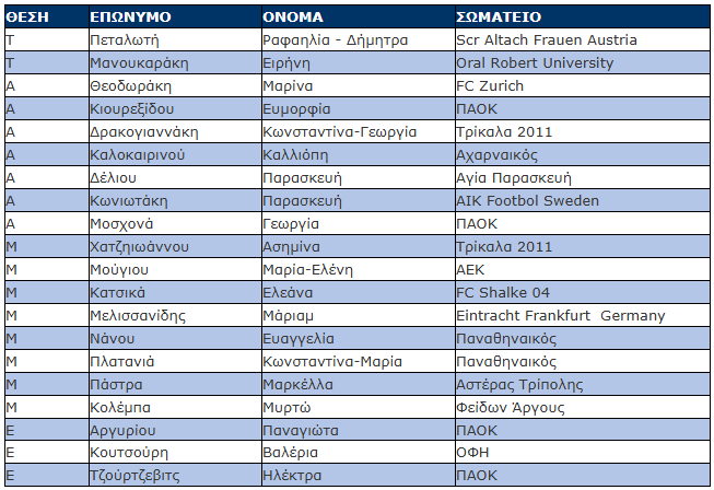 Ανακοινώθηκαν οι ποδοσφαιρίστριες που κάλεσε ο προπονητής της Εθνικής Νεανίδων, Γιώργος Παπακώστας, ενόψει της συμμετοχής στην πρώτη προκριματική φάση του Ευρωπαϊκού Πρωταθλήματος Νεανίδων 2026 (3ος όμιλος, League A), η οποία θα διεξαχθεί στην Εσθονία στο διάστημα 22-28/10/2025.