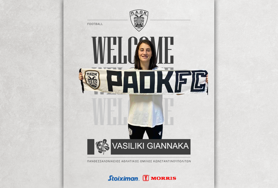 “Ο ΠΑΟΚ, και το τμήμα Ποδοσφαίρου γυναικών, ΠΑΟΚ Morris, ανακοινώνουν την έναρξη τριετούς συνεργασίας με την αθλήτρια, Βασιλική Γιαννάκα.
