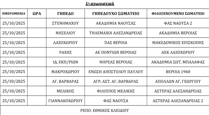 H έναρξη των αγώνων έχει προγραμματιστεί για το Σάββατο 25/10.