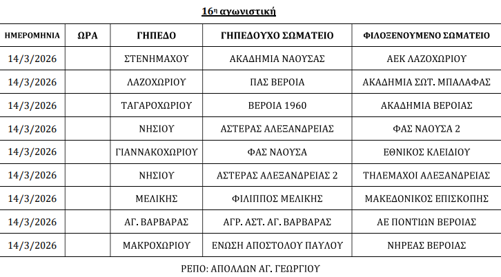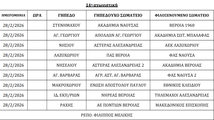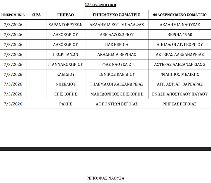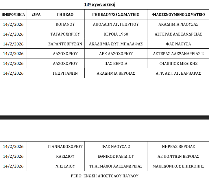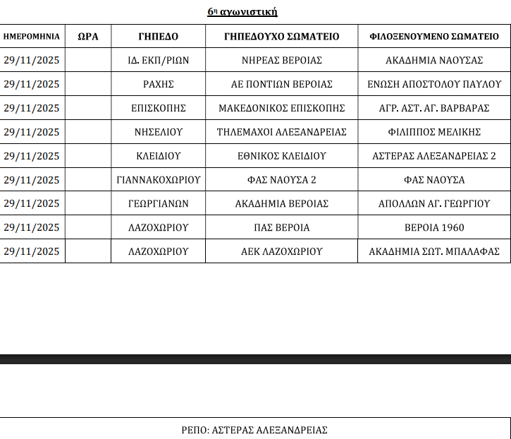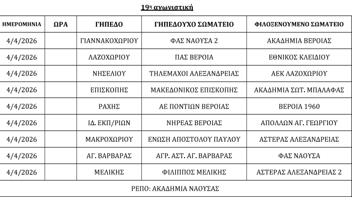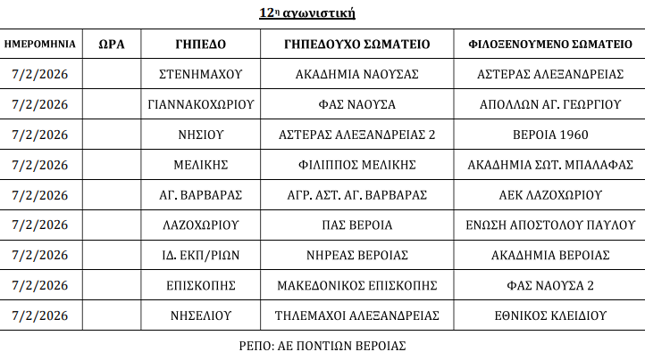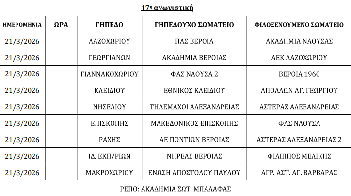 Πραγματοποιήθηκε στα γραφεία της ΕΠΣ Ημαθίας, η κλήρωση των αγωνιστικών του πρωταθλήματος Υποδομής U12. Φέτος, στο εν λόγω πρωτάθλημα, συμμετέχουν 19 ομάδες και συνολικά 17 ομάδες, καθώς ο ΦΑΣ Νάουσα και ο Αστέρας Αλεξάνδρειας συμμετέχουν με δύο τμήματα.