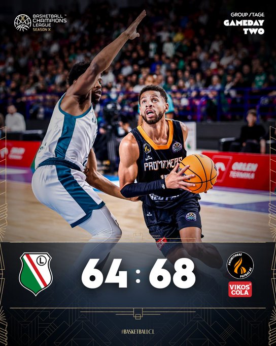 Παρά την απουσία του Ρομπ Γκρέι, ο Προμηθέας Πάτρας έδειξε χαρακτήρα στη Βαρσοβία και πήρε σπουδαία εκτός έδρας νίκη επί της Λέγκια με 68-64, φτάνοντας στο 2/2 στο Basketball Champions League. Πρωταγωνιστής της αναμέτρησης ήταν ο Χάμοντς, ο οποίος σημείωσε 20 πόντους και «υπέγραψε» τη νίκη με καθοριστικό τρίποντο στο φινάλε για το 63-68.