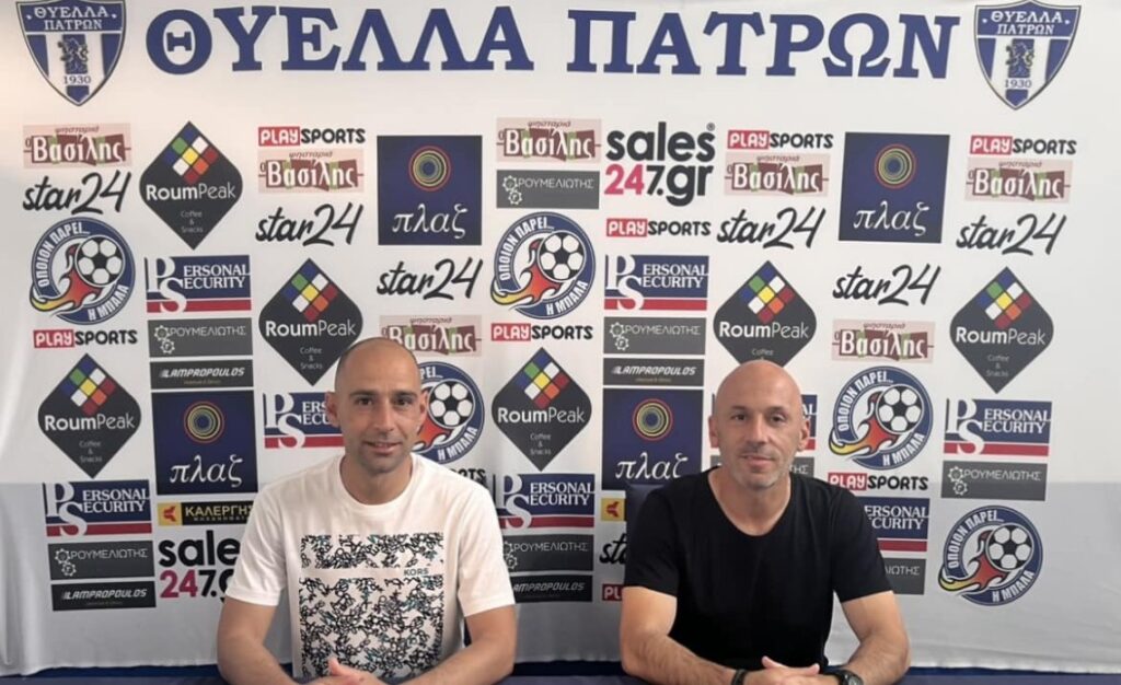 “Η διοίκηση της Θύελλας Πατρών ανακοινώνει την έναρξη της συνεργασίας της με το προπονητικό δίδυμο Βύρωνα Καραβία και Θεόδωρο Νικολακόπουλο, με άμεσο συνεργάτη τον Γιώργο Νικολακόπουλο.