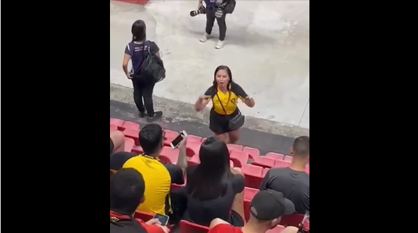 Μια γυναίκα ψάχνει τον άνδρα της στις εξέδρες και τελικά τον βρίσκει μαζί με την ερωμένη του! Αφού του τα… χώνει μαζί με κάποιες ψιλές, τελικά αποχωρεί κυρία μαζί με την ερωμένη του άντρα της!