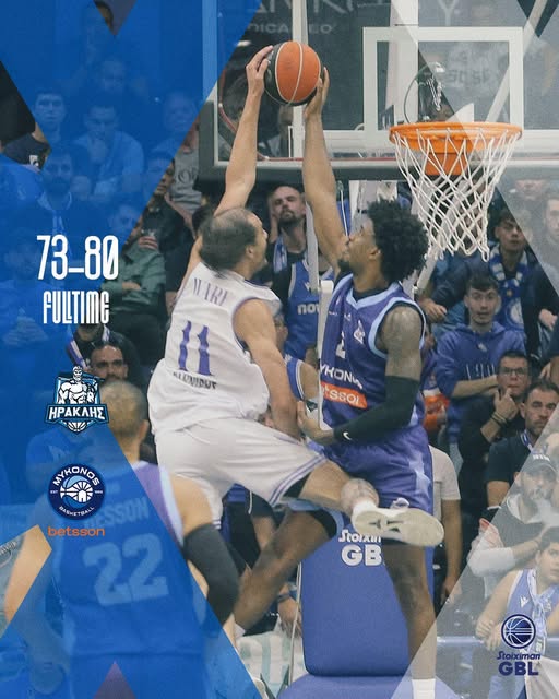 Την πρώτη νίκη της ιστορίας της στην GBL πανηγύρισε η Μύκονος αφού επικράτησε του Ηρακλή στο Ιβανώφειο, για την 3η αγωνιστική, με 80-73. Τα κατάφερε αφού άντεξε στην αντεπίθεση των γηπεδούχων που «ροκάνισαν» τη διαφορά από τους 17 στους δύο.