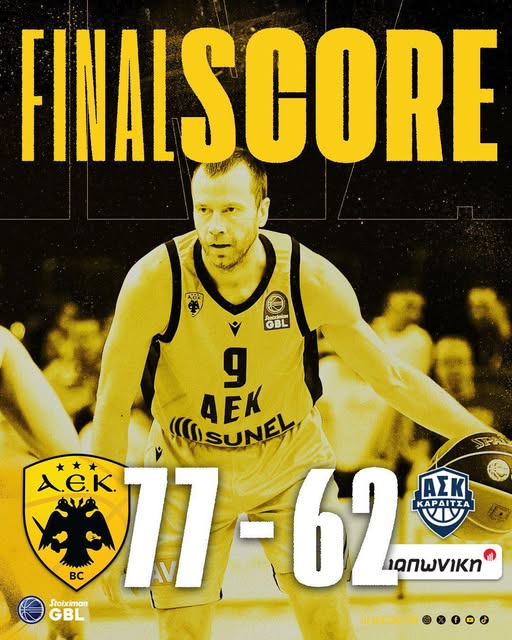Την τρίτη της νίκη σε ισάριθμα παιχνίδι πέτυχε η ΑΕΚ που επιβλήθηκε στην έδρα της με 77-62 της Καρδίτσας, στο παιχνίδι που άνοιξε την αυλαία της 3ης αγωνιστικής της GBL. Οι «κιτρινόμαυροι» παραμένουν την πρώτη θέση με ρεκόρ 3-0 ενώ οι Θεσσαλοί υποχώρησαν στο 1-1.