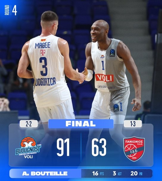 Βαρύ αποτέλεσμα γνώρισε ο Πανιώνιος στην Ποντγκόριτσα, όπου ηττήθηκε με 91-63 από την Μπουντούτσνοστ για την 4η αγωνιστική του EuroCup, υποχωρώντας στο 1-3 της κατάταξης. Οι «κυανέρυθροι», που ταξίδεψαν με 11 παίκτες λόγω της απουσίας του Χαντς (εκτός και από το επόμενο παιχνίδι με τον Άρη), δεν κατάφεραν να ανταγωνιστούν τους Μαυροβούνιους, οι οποίοι επέβαλαν πλήρως τον ρυθμό τους από το ξεκίνημα.
