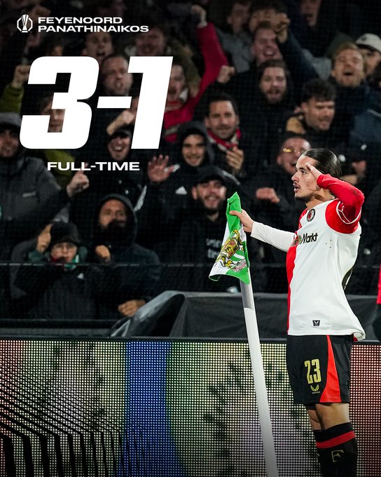 Σε μια βραδιά που ξεκίνησε με δυσκολίες λόγω του άστατου καιρού, ο Παναθηναϊκός δεν κατάφερε να συνεχίσει το θετικό του ξεκίνημα στη League Phase του Europa League, γνωρίζοντας την ήττα με 3-1 από τη Φέγενορντ στο Ρότερνταμ. Οι «πράσινοι» προηγήθηκαν με τον Σφιντέρσκι, όμως η συνέχεια τούς επιφύλασσε ανατροπή, με την ολλανδική ομάδα να εκμεταλλεύεται τα αμυντικά κενά και να πανηγυρίζει την πρώτη της νίκη στη διοργάνωση.