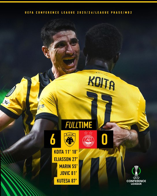 Με το τελικό 6-0, η ΑΕΚ όχι μόνο κατέκτησε τους πρώτους της βαθμούς στη League Phase, αλλά έστειλε μήνυμα ότι η ήττα στη Σλοβενία ήταν απλώς μια παρένθεση. Το σύνολο του Νίκολιτς έδειξε ταυτότητα, ταχύτητα, αυτοματισμούς και ομαδικότητα που παραπέμπει σε μια ομάδα με βλέψεις πρόκρισης.