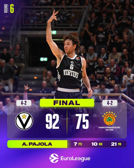 Η Βίρτους Μπολόνια του Ντούσκο Ιβάνοβιτς επιβλήθηκε με 92-75 του Παναθηναϊκού για την 6η αγωνιστική της Ευρωλίγκας, εκμεταλλευόμενη πλήρως τα προβλήματα και την αστάθεια των «πράσινων». Με αυτή τη νίκη, οι Ιταλοί ανέβηκαν στο 4-2, ρεκόρ που μοιράζονται πλέον και οι Κυπελλούχοι Ελλάδας.