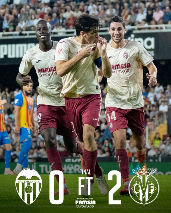 Η Βιγιαρεάλ επέστρεψε στα θετικά αποτελέσματα, επικρατώντας με 2-0 της Βαλένθια στο «Μεστάγια» για τη 10η αγωνιστική της La Liga. Με αυτή τη νίκη, η ομάδα του Μαρθελίνο έφτασε τις έξι συνολικά στο πρωτάθλημα και ανέβηκε στην τρίτη θέση της βαθμολογίας, παραμένοντας εκεί ανεξάρτητα από τα υπόλοιπα αποτελέσματα.