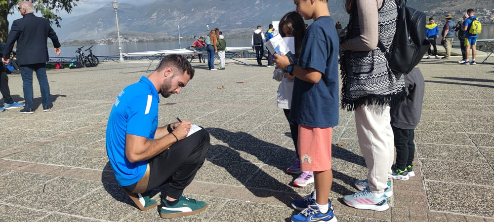 Στην πλατεία Μαβίλη, δίπλα στη λίμνη και τη βάρκα με την οποία προπονείται στην Παμβώτιδα, εισέπραξε συγχαρητήρια και μοίρασε χαμόγελα σε μικρούς και μεγάλους. Με τη σεμνότητα και την ταπεινότητα που τον διακρίνει στη μεγάλη πορεία που έχει κάνει.