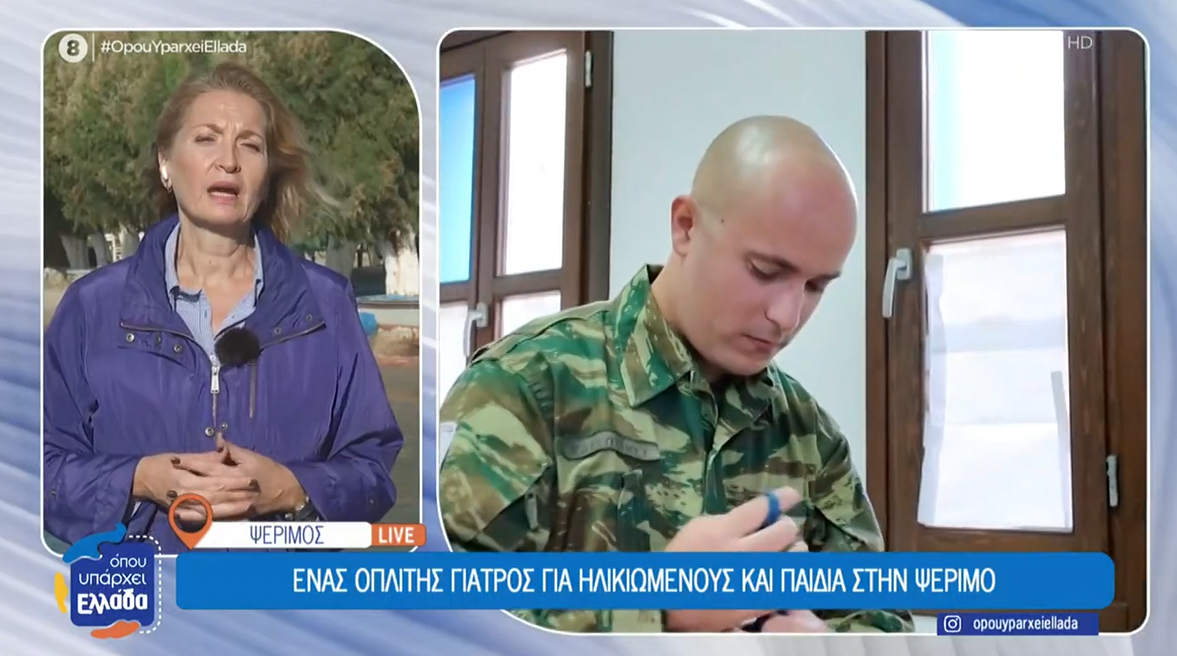 Ένας οπλίτης γιατρός για ηλικιωμένους και παιδιά στην Ψέριμο (vid)