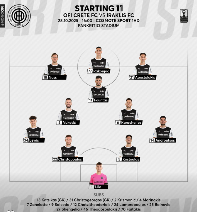 Οι 11άδες στο ΟΦΗ – Ηρακλής (16.00)