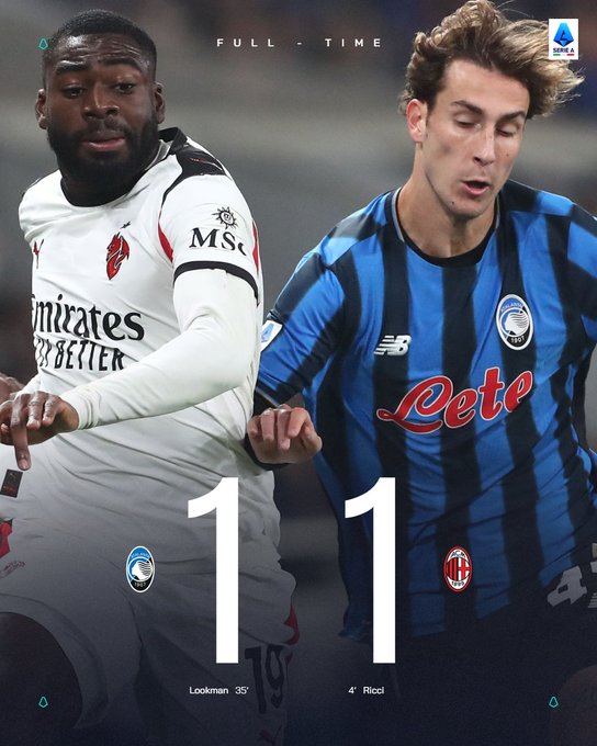 Ισόπαλες 1-1 αναδείχθηκαν η Αταλάντα και η Μίλαν στο Μπέργκαμο, σε μια αναμέτρηση με πολλές φάσεις και ρυθμό, που άφησε και τις δύο ομάδες με ανάμεικτα συναισθήματα. Οι «ροσονέρι» έμειναν στο -3 από την κορυφή, ενώ για τους γηπεδούχους αυτή ήταν η πέμπτη συνεχόμενη ισοπαλία στη Serie A.