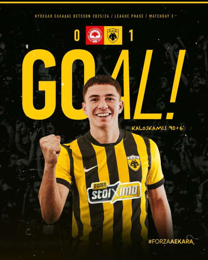 Η ΑΕΚ επικράτησε δύσκολα 1-0 της Ηλιούπολης στο Δημοτικό Στάδιο Ηλιούπολης, χάρη σε γκολ του Καλοσκάμη στο έκτο λεπτό των καθυστερήσεων, για την 3η αγωνιστική της League Phase του Κυπέλλου Ελλάδας. Παρά το εκτεταμένο ροτέισον του Μάρκο Νίκολιτς, η Ένωση πέτυχε την τρίτη της νίκη σε ισάριθμους αγώνες και διατήρησε το απόλυτο.