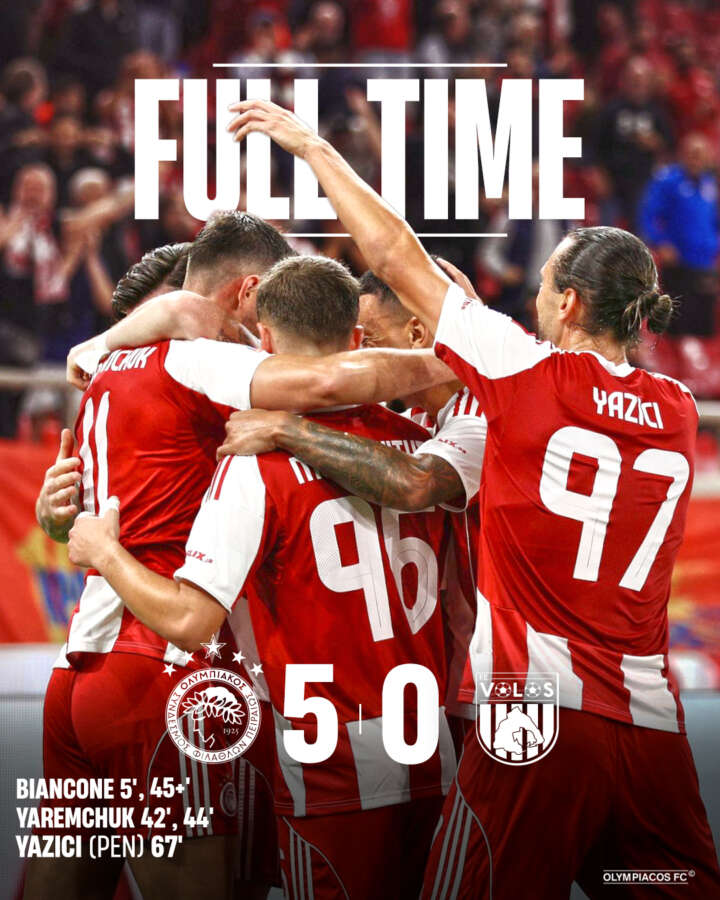 Σε ρυθμούς Κυπέλλου Ελλάδας επέστρεψε ο Ολυμπιακός, που συνέτριψε με 5-0 τον Βόλο στο «Γεώργιος Καραϊσκάκης» για την 3η αγωνιστική της League Phase, πραγματοποιώντας το 2×2 στο φετινό θεσμό. Ο Χοσέ Μεντιλίμπαρ προχώρησε σε εκτεταμένο ροτέισον, όμως οι «ερυθρόλευκοι» κυριάρχησαν απόλυτα, βρίσκοντας ρυθμό και αυτοπεποίθηση ενόψει των κρίσιμων αναμετρήσεων με Άρη και Αϊντχόφεν.