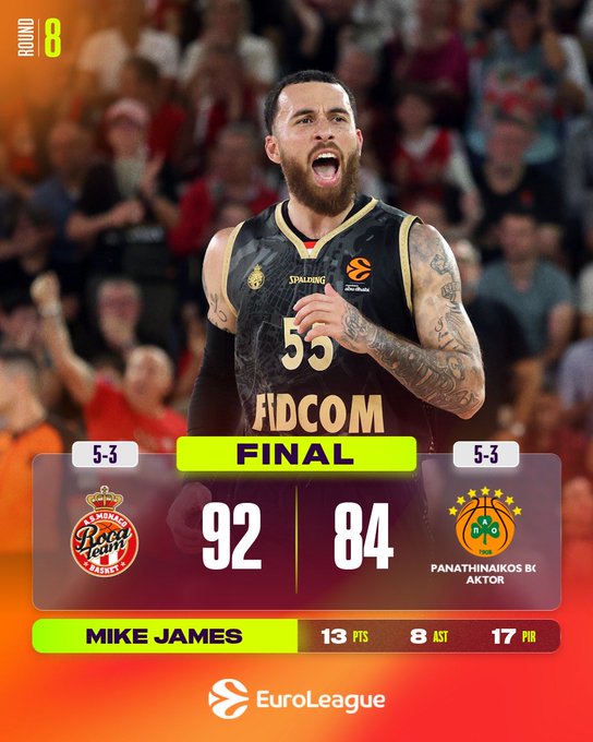 Ανώτερη σε όλη τη διάρκεια του αγώνα, η Μονακό επιβλήθηκε του Παναθηναϊκού με 92-84 για την 8η αγωνιστική της Euroleague, δείχνοντας σταθερότητα και αυτοπεποίθηση μετά τη νίκη επί του Ολυμπιακού στο ΣΕΦ. Η ομάδα του Βασίλη Σπανούλη έκανε το «2 στα 2» στη «διαβολοβδομάδα» και ανέβηκε στο 5-3, αφήνοντας πίσω το μέτριο ξεκίνημα της σεζόν.