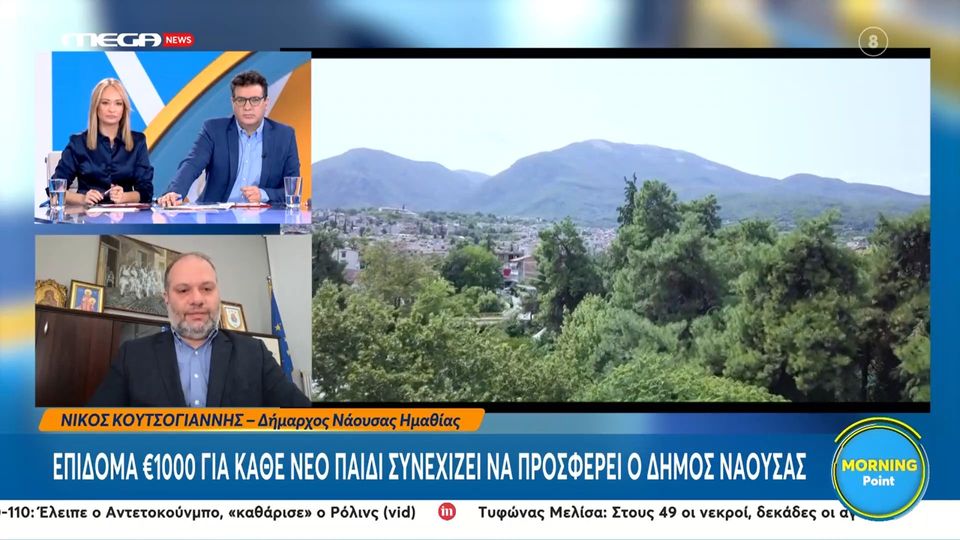Στην εκπομπή “Morning Point” μίλησε ο Δήμαρχος Νάουσας, Νίκος Κουτσογιάννης, για το επίδομα τόνωσης για το δημογραφικό από τον Δήμος Νάουσας.