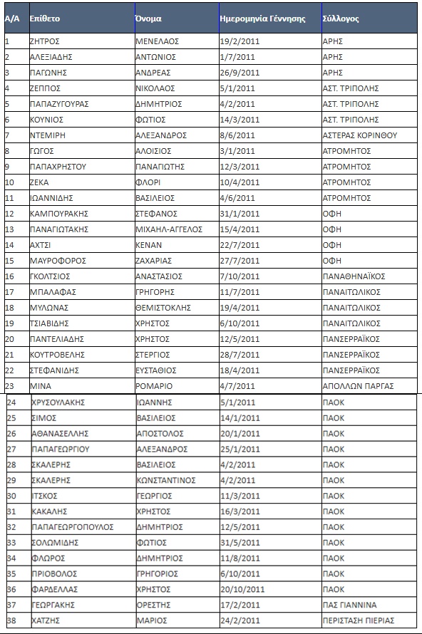 Ανακοινώθηκαν τα ονόματα των ποδοσφαιριστών που κλήθηκαν από τον Παναγιώτη Καραγιάννη για τις προεπιλογές της Εθνικής Ομάδας U15 στη Θεσσαλονίκη από 03 έως 06/11/2025.