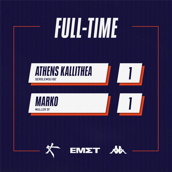 Με ισοπαλία 1-1 ολοκληρώθηκε το πρώτο χρονικά παιχνίδι της 8ης αγωνιστικής της Super League 2, ανάμεσα σε Athens Kallithea και Μαρκό, στο «Ελ Πάσο». Το αποτέλεσμα αφήνει και τις δύο ομάδες στους 13 βαθμούς, με την “AK” να χάνει την ευκαιρία να πλησιάσει την κορυφή και τη νεοφώτιστη Μαρκό να συνεχίζει την εξαιρετική της πορεία.