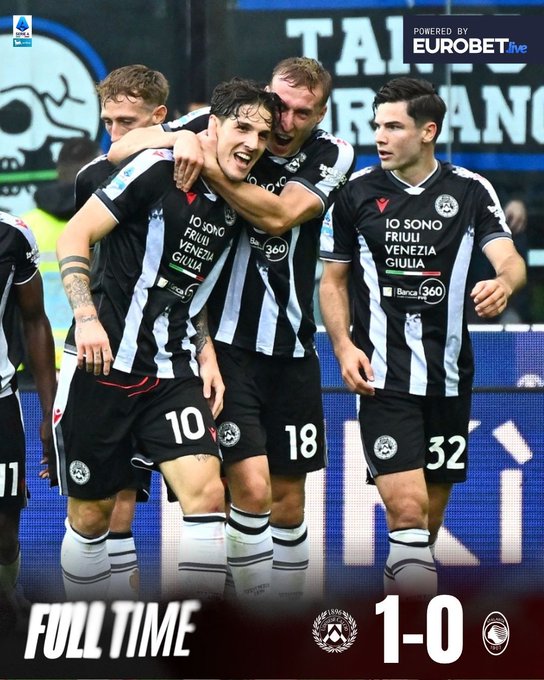 Η Ουντινέζε επικράτησε 1-0 της Αταλάντα στο «Ντάτσια Αρένα» στο εναρκτήριο παιχνίδι της 10ης αγωνιστικής της Serie A, βάζοντας τέλος στο αήττητο των «μπεργκαμάσκι». Οι γηπεδούχοι μπήκαν δυνατά και βρήκαν το γκολ της νίκης στο 40’, όταν ο Νικολό Ζανιόλο εκμεταλλεύτηκε τη σέντρα του Καμαρά και με εξαιρετικό αριστερό σουτ έστειλε την μπάλα στη γωνία του Μούσο. Παρά τις αλλαγές και την πίεση στο δεύτερο μέρος, η Αταλάντα δεν μπόρεσε να απαντήσει, γνωρίζοντας την πρώτη της ήττα στο πρωτάθλημα. ,