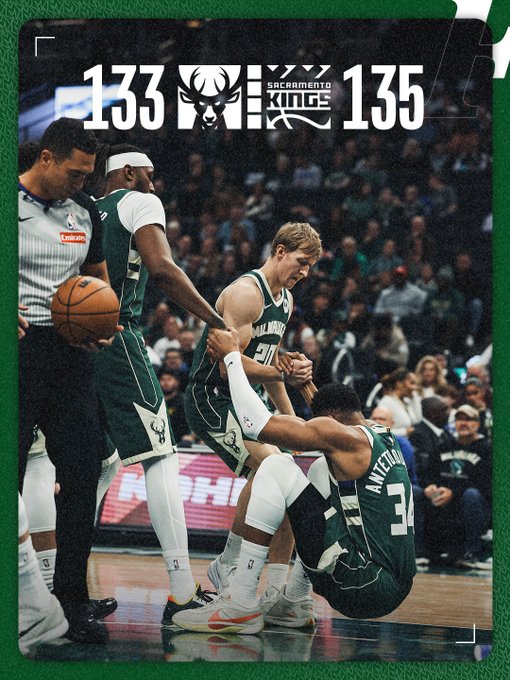 Οι Μιλγουόκι Μπακς υπέστησαν τη δεύτερη ήττα τους στα πρώτα έξι παιχνίδια της σεζόν του NBA, χάνοντας εντός έδρας από τους Σακραμέντο Κινγκς με 135-133, σε ένα παιχνίδι με δραματική εξέλιξη.