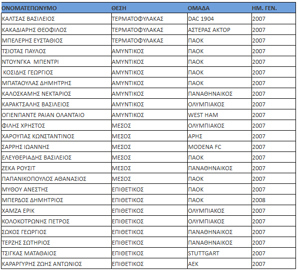 Ανακοινώθηκαν τα ονόματα των ποδοσφαιριστών που κλήθηκαν από τον Βαγγέλη Μόρα για τους αγώνες του 3ου προκριματικού ομίλου του Ευρωπαϊκού Πρωταθλήματος Νέων 2026, που θα διεξαχθούν στην Αττάλεια 12-18/11/2026. Αντίπαλοι η Τουρκία, η Λευκορωσία και το Λιχτενστάιν.
