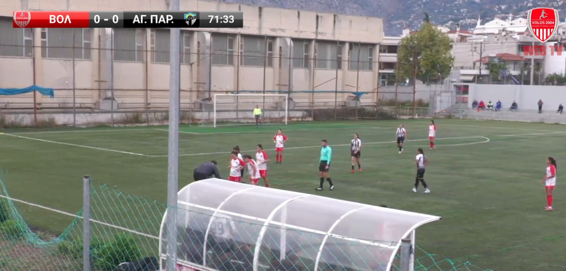 Από την πλευρά του, ο διοικητικός του ΑΣ Βόλος 2004, Τηλέμαχος Μαγαλιός, απάντησε ότι το γήπεδο διαθέτει άδεια λειτουργίας και κρίθηκε κατάλληλο από τον διαιτητή. Παρ’ όλα αυτά, ο πλαστικός χλοοτάπητας του Βοηθητικού παρουσιάζει σοβαρές φθορές και μπαλώματα, με τον Δήμο Βόλου να καλείται να προχωρήσει σε ουσιαστικές παρεμβάσεις για την ασφάλεια των αθλητριών. Το παιχνίδι ολοκληρώθηκε χωρίς σκορ (0-0).