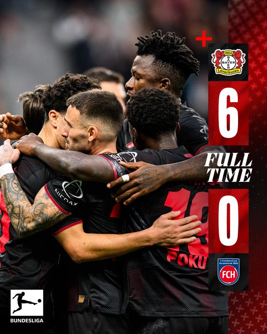 Αντίθετα, η Λεβερκούζεν συνέχισε με εντυπωσιακό σκορ στο πρωτάθλημα, συντρίβοντας 6-0 τη Χάιντενχαϊμ, με τον Πάτρικ Σικ να πετυχαίνει δύο γκολ από νωρίς και τη «φονσέφ» να επιδεικνύει επιθετικό οργασμό απέναντι στη νεοφώτιστη αντίπαλό της.