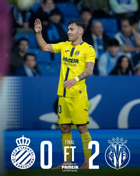 Με επαγγελματική εμφάνιση στη Βαρκελώνη, η Βιγιαρεάλ επικράτησε 2-0 της Εσπανιόλ στο τελευταίο χρονικά παιχνίδι του Σαββάτου για τη 12η αγωνιστική της LaLiga και σκαρφάλωσε στη 2η θέση της βαθμολογίας. Οι φιλοξενούμενοι προηγήθηκαν στο 43’ με υπέροχο αριστερό σουτ του Ζεράρ Μορένο έξω από την περιοχή, παίρνοντας ψυχολογικό προβάδισμα λίγο πριν το ημίχρονο. Στην επανάληψη, ο Αλμπέρτο Μολέιρο εκμεταλλεύτηκε την ασίστ του Ταζόν Μπιουκάναν και από κοντά έκανε το 0-2 στο 57’, «σφραγίζοντας» τη νίκη των «κίτρινων υποβρυχίων». Η Εσπανιόλ προσπάθησε να αντιδράσει, δημιούργησε ευκαιρίες με τους Ντόλαν και Κίκε Γκαρθία, αλλά ο Λουίς Ζούνιορ κράτησε το μηδέν για τη Βιγιαρεάλ.