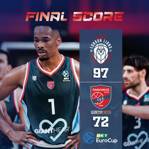 Ο Πανιώνιος δεν κατάφερε να φανεί ανταγωνιστικός απέναντι στους Λόντον Λάιονς και γνώρισε βαριά ήττα με 97-72 στο πλαίσιο της 7ης αγωνιστικής του EuroCup. Οι «κυανέρυθροι» βρέθηκαν από νωρίς πίσω με διαφορά 20 πόντων και δεν κατάφεραν ποτέ να επιστρέψουν στο παιχνίδι, παρά την προσπάθεια και τη στήριξη περίπου 500 οπαδών που ταξίδεψαν στην αγγλική πρωτεύουσα και έδωσαν παλμό στην κατά τα άλλα «άψυχη» Copper Box Arena.